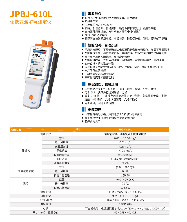 雷磁便攜式溶解氧測(cè)定儀JPBJ-610L 介紹